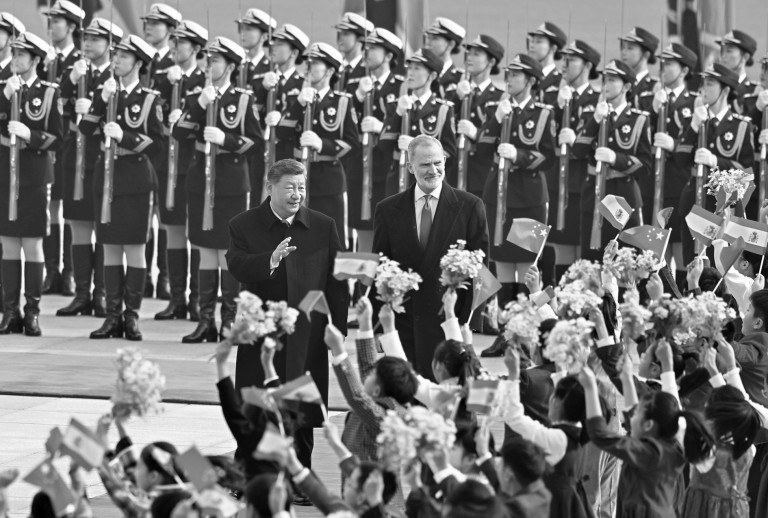 习近平欢迎费利佩六世国王访华,指出中国和西班牙都有深厚的历史文化底蕴。建交50多年来,两国坚持从战略高度和长远角度看待和发展双边关系,相互尊重、相互支持、相互成就,树立了不同历史文化、不同社会制度国家友好相处、共谋发展的典范,也为推动全球开放合作、维护国际公平正义发挥了重要作用。西班牙王室为中西关系发展作出了突出贡献。在两国迎来建立全面战略伙伴关系20周年之际,费利佩六世国王对中国进行国事访问,对推动两国友好合作不断向前发展具有重要意义。