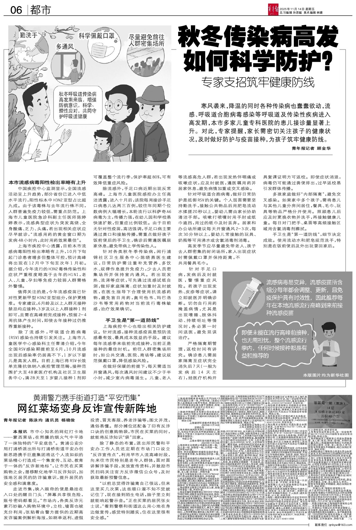 - 秋冬传染病高发 如何科学防护? 寒风袭来,降温的同时各种传染病也蠢蠢欲动,流感、呼吸道合胞病毒感染等呼吸道及传染性疾病进入高发期,本市多家儿童专科医院的患儿接诊量显著上升。对此,专家提醒,家长需密切关注孩子的健康状况,及时