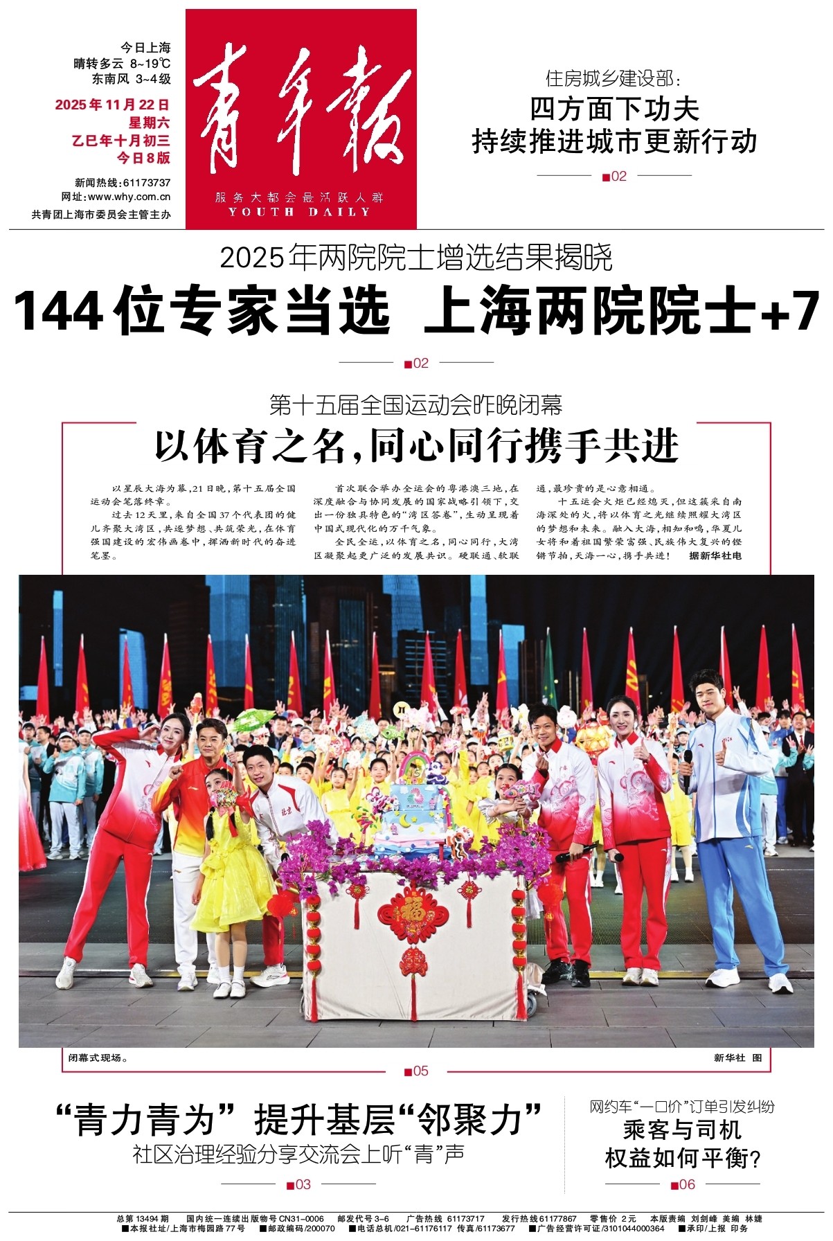 - 2025年11月22日 星期六 乙巳年十月初三 今日8版 新闻热线:61173737 网址:www.why.com.cn 共青团上海市委员会主管主办