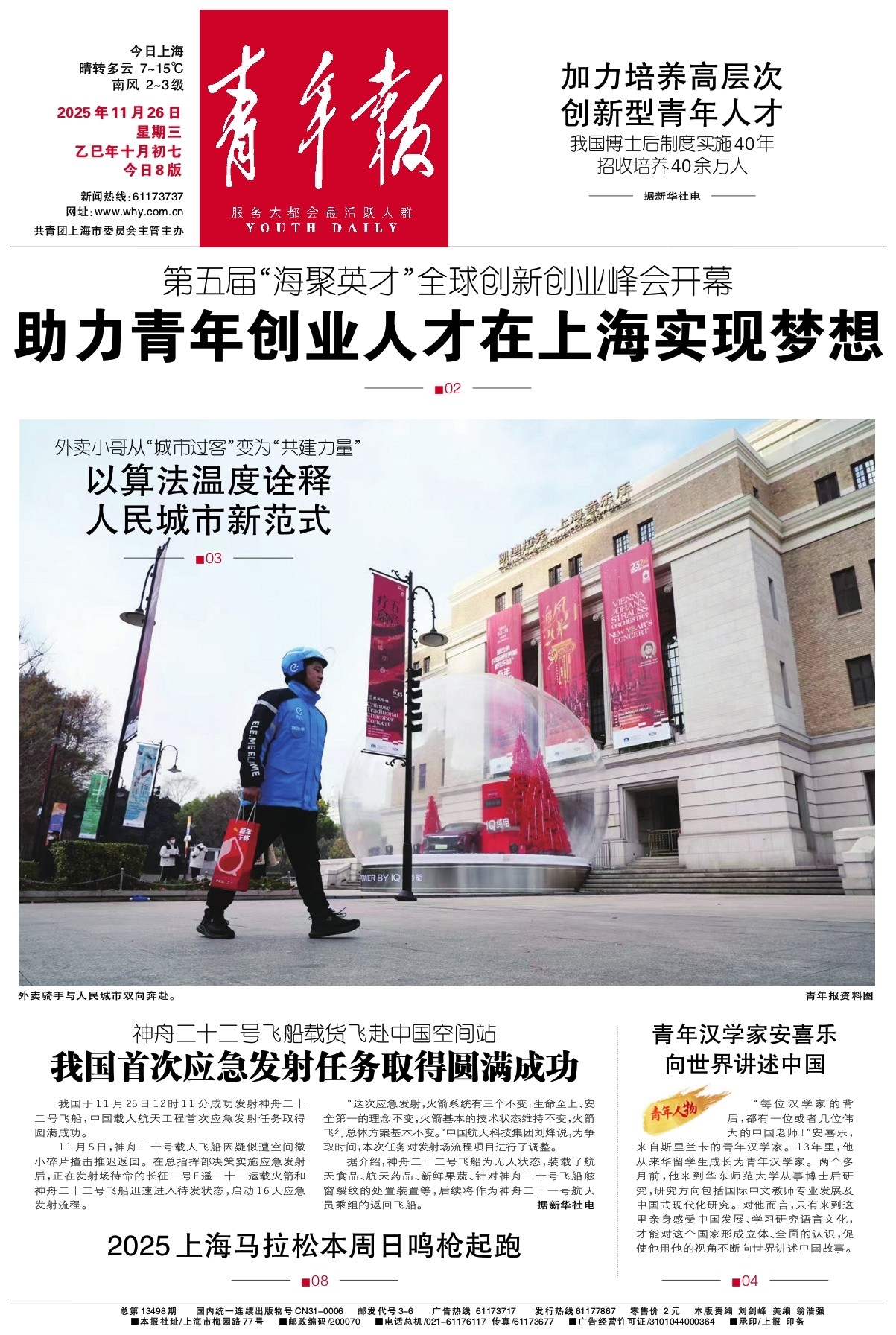 - 2025年11月26日 星期三 乙巳年十月初七 今日8版 新闻热线:61173737 网址:www.why.com.cn 共青团上海市委员会主管主办