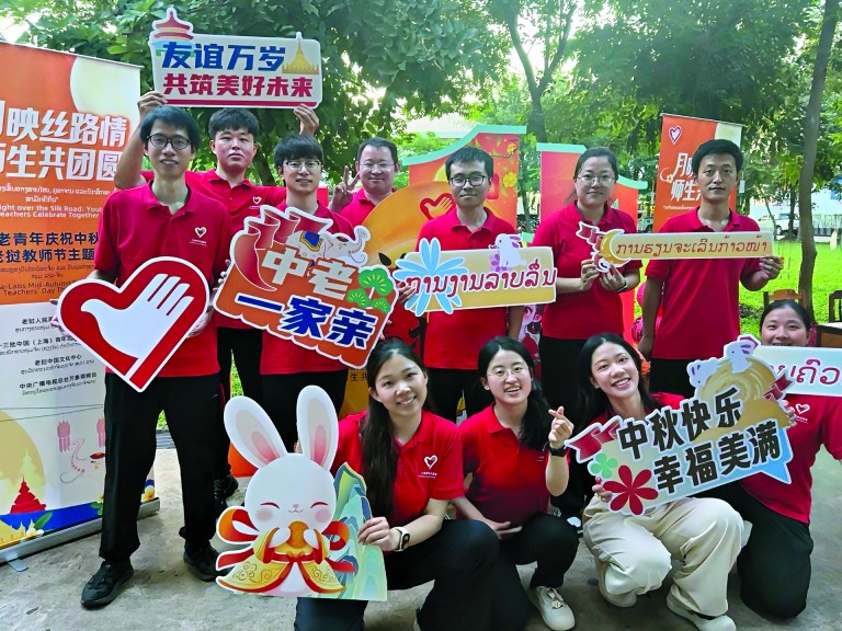 除了义诊,志愿者还结合不同的节日,积极策划各类活动,通过“玩起来”的方式,让老挝民众对中国传统文化形成更深刻的理解。除了这次的科普活动,10月初,结合中国中秋节与老挝教师节,志愿者策划了“月映丝路情 师生共团圆”中秋活动。活动中,制作漆扇、讲述中秋习俗、分享月饼等趣味环节,让老挝的孩子们乐在其中。
