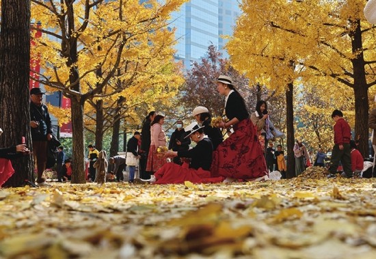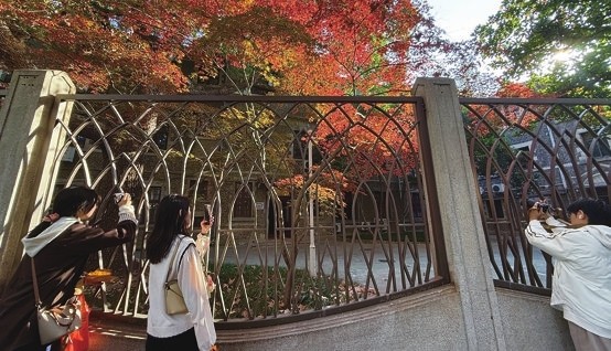 上海人从不辜负好天气的馈赠。古城公园的老银杏下,小朋友与老城厢坐于同一片金黄中;音乐厅广场前,翻飞的叶片正为古典旋律伴奏。四平路的银杏黄得浓烈,巨鹿路上一树红叶在墙内燃起火焰——它们不是遥远的风景,而是生活中不期而遇的心动。