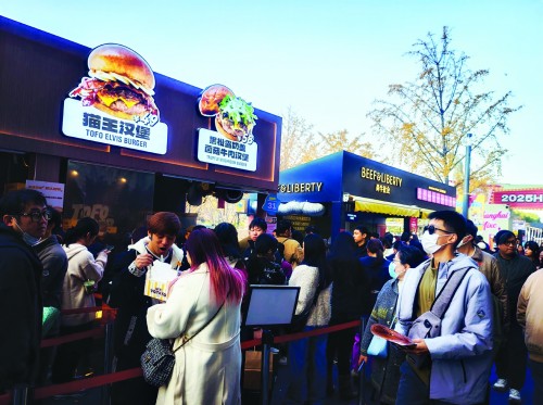 位于闵行区吴中路的上海万象城这几天人山人海,商城门前的百米“上街沿”搭起一个个“帐篷”,开出一家家“店铺”,一阵阵烤肉夹带面包蔬菜味香飘满街,引来四面八方的年轻人排起长队……2025HOCH汉堡节全国巡展来到上海,就这么火了。青年报记者发现,眼下,各种各样的自创美食“节日”不但抓住了年轻人的胃,也给商场带来了流量。