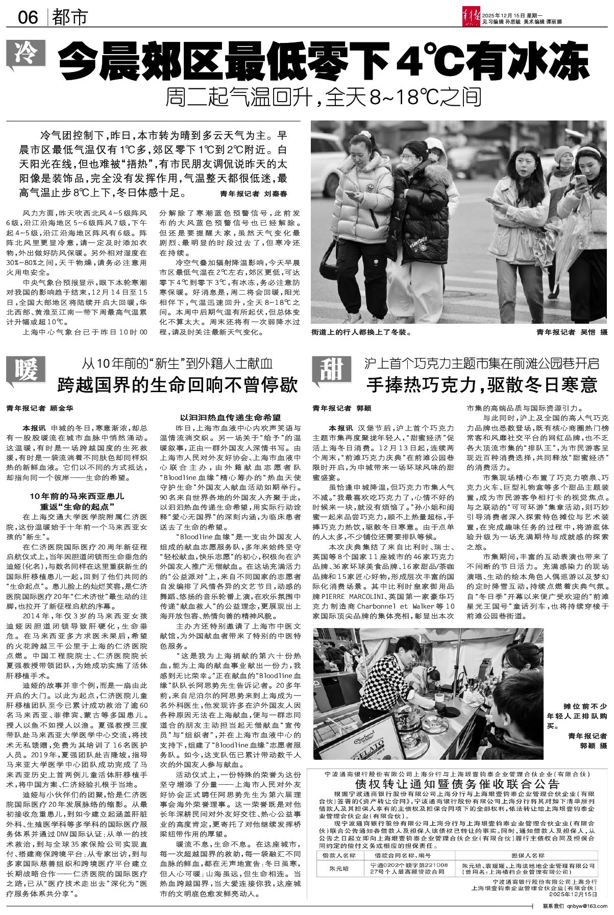 - 跨越国界的生命回响不曾停歇 青年报记者 顾金华 本报讯 申城的冬日,寒意渐浓,却总有一股股暖流在城市血脉中悄然涌动。这温暖,有时是一场跨越国度的生死救援,有时是一袋流淌着不同肤色却同样炽热的新鲜血液。它们以不