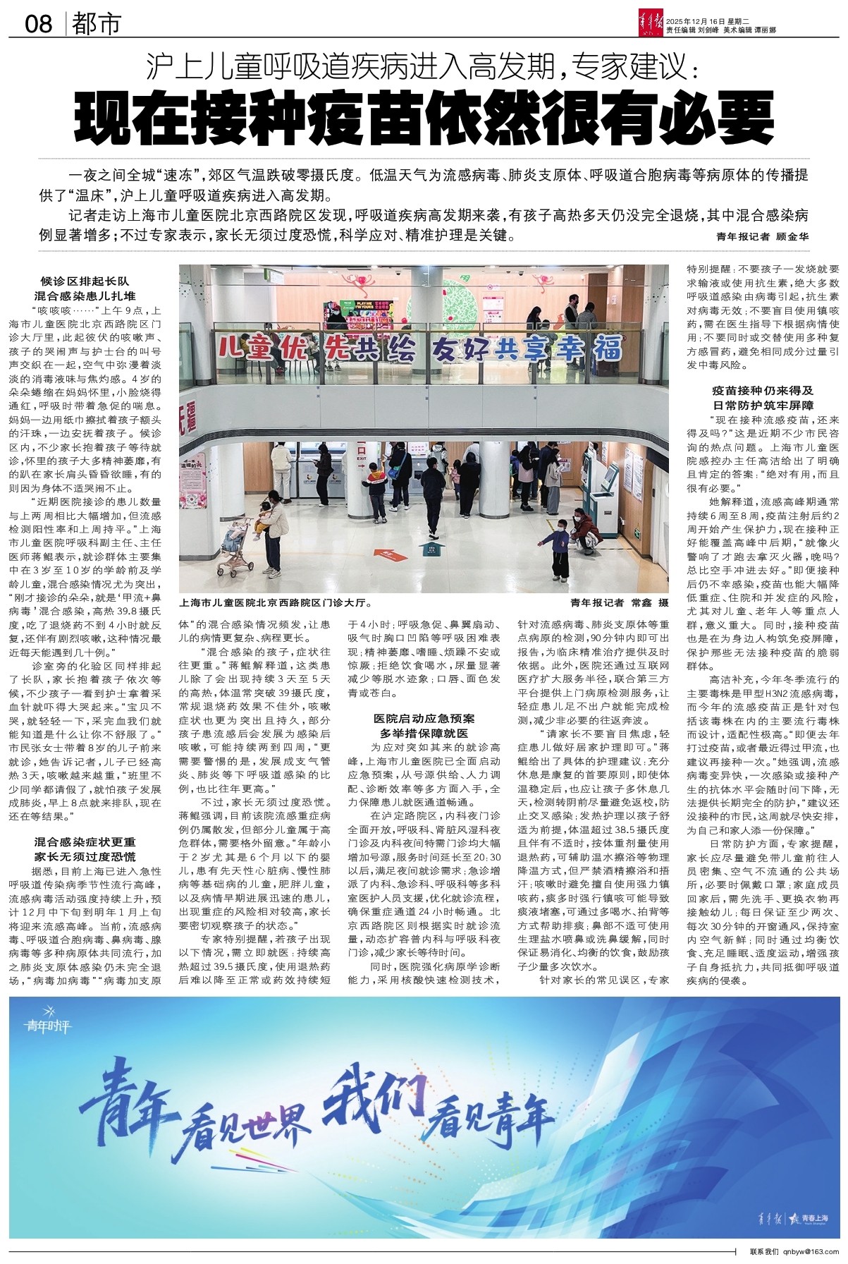一夜之间全城“速冻”,郊区气温跌破零摄氏度。低温天气为流感病毒、肺炎支原体、呼吸道合胞病毒等病原体的传播提供了“温床”,沪上儿童呼吸道疾病进入高发期。 记者走访上海市儿童医院北京西