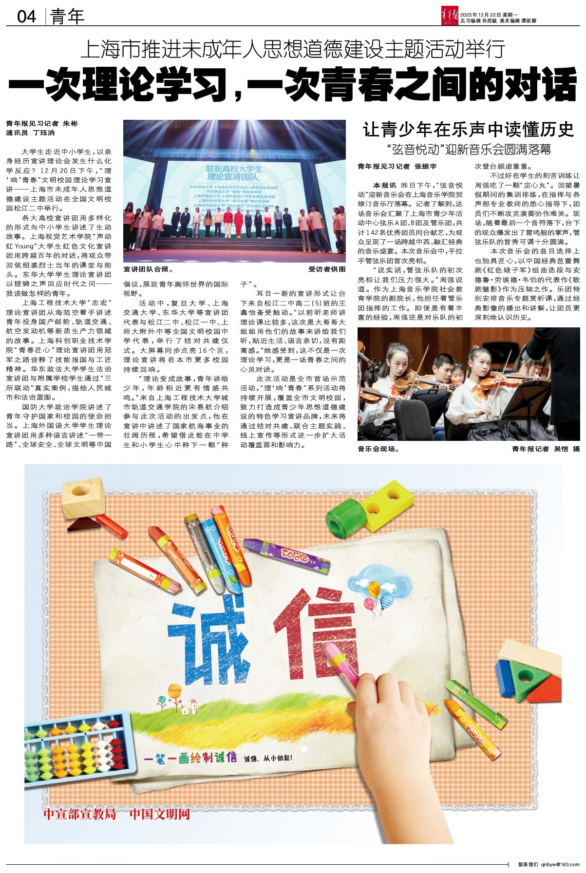 青年报见习记者 朱彬 通讯员 丁珏汭 大学生走近中小学生,以亲身经历宣讲理论会发生什么化学反应?12月20日下午,“理‘响’青春”文明校园理论学习宣讲——上海市未成年人思想道德建设