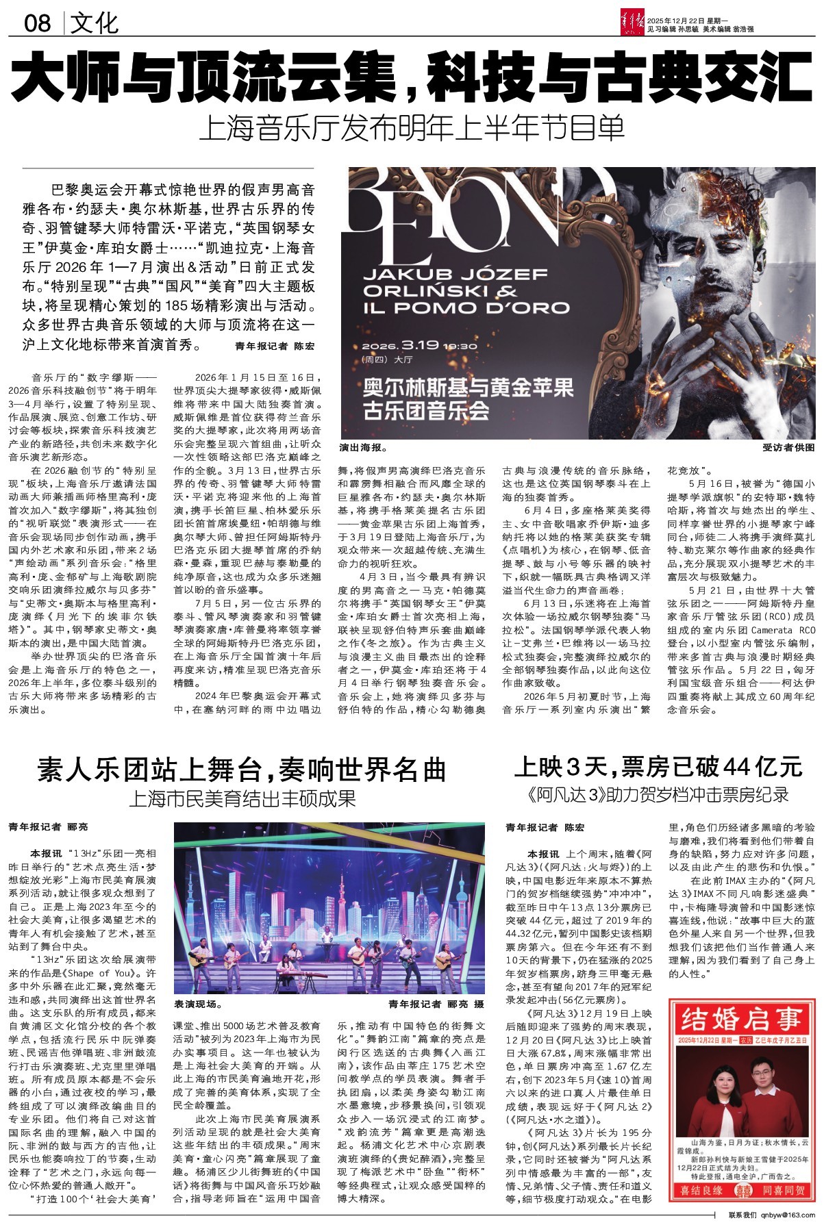 - 大师与顶流云集,科技与古典交汇 巴黎奥运会开幕式惊艳世界的假声男高音雅各布·约瑟夫·奥尔林斯基,世界古乐界的传奇、羽管键琴大师特雷沃·平诺克,“英国钢琴女王”伊莫金·库珀女爵士……“凯迪拉克·上海音乐厅2026年1—7月演