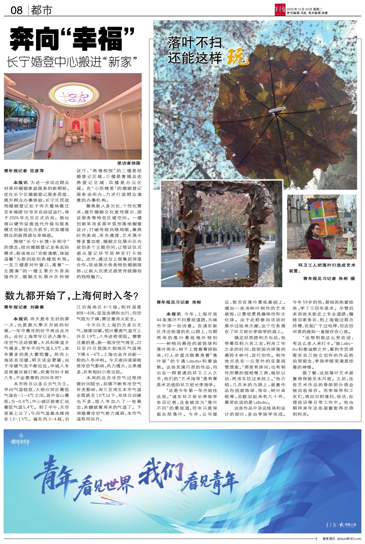 本报讯 昨天是冬至后的第一天,也是数九寒天开始的时候,一年中最冷的时节将由此开启。此时上海常年已进入隆冬,冷空气活动频繁,大风和降温天气增多,常年平均气温6.5℃,发布最多的是大雾预警。然而上海还在回暖,明天还会更暖,由于冷暖气流不断拉扯,申城入冬进程屡次被打断,究竟何时才能入冬,不会要等到2026年吧?