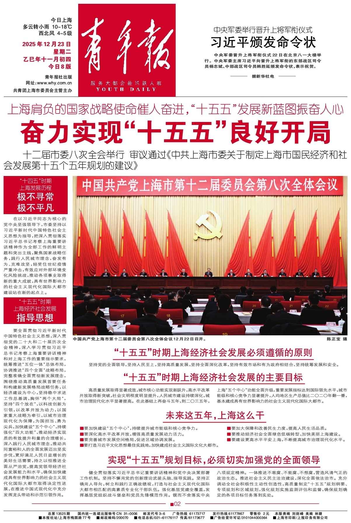 - 2025年12月23日 星期二 乙巳年十一月初四 今日8版 青年报社出版 网址:www.why.com.cn 共青团上海市委员会主管主办