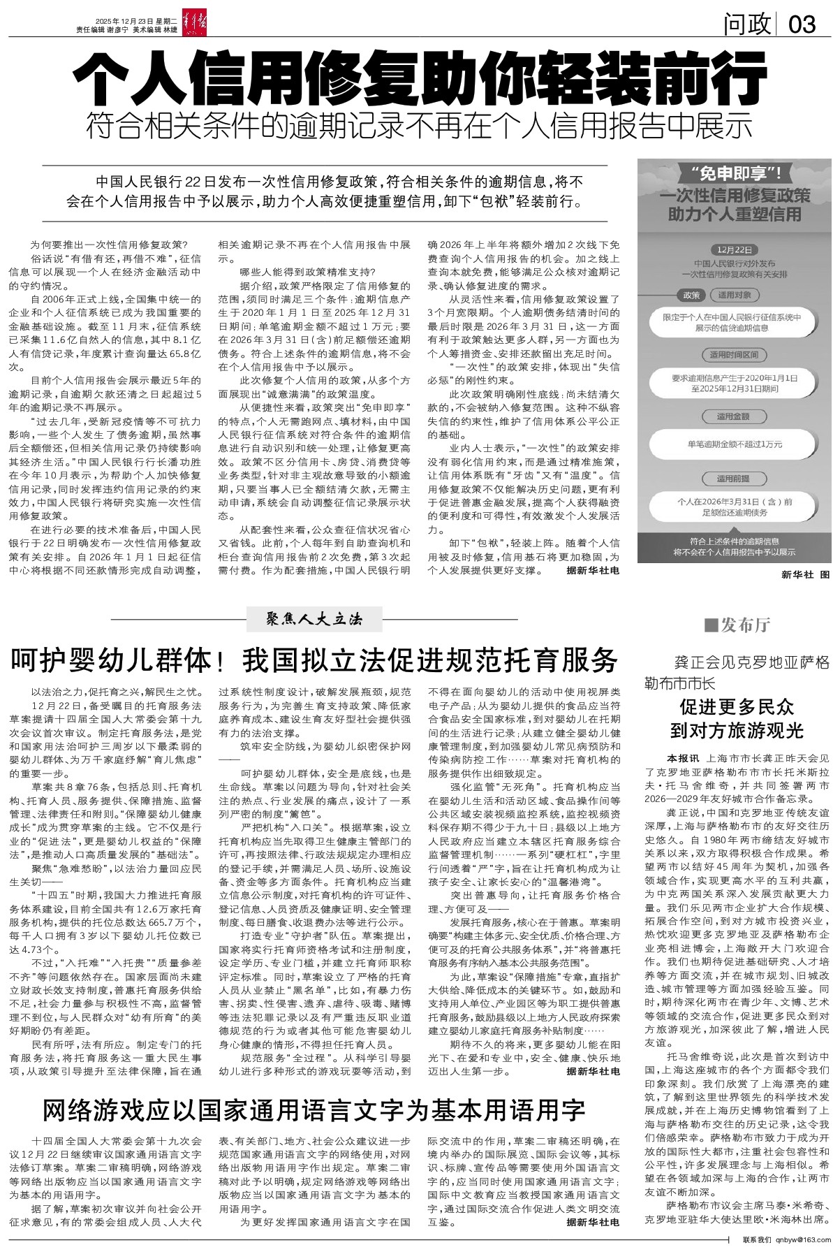 - 个人信用修复助你轻装前行 中国人民银行22日发布一次性信用修复政策,符合相关条件的逾期信息,将不会在个人信用报告中予以展示,助力个人高效便捷重塑信用,卸下“包袱”轻装前行。 为何要推出一次性信用修复政策?