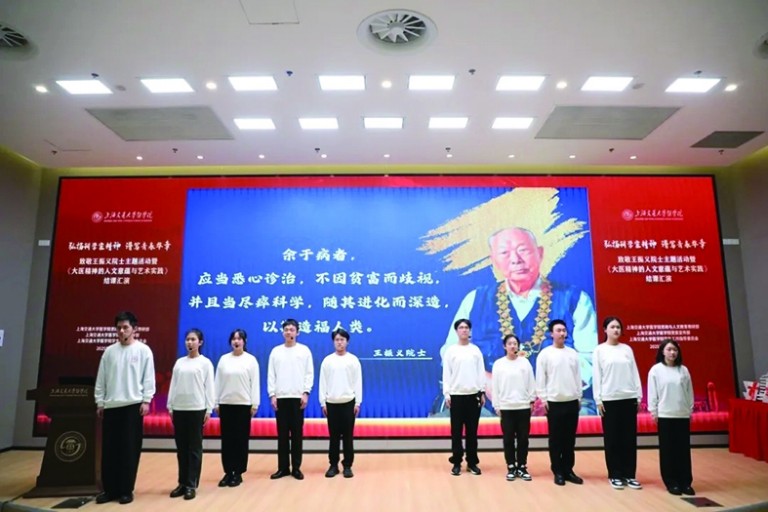 近日,在上海交通大学医学院浦东校区行政会议中心交医厅,以“弘扬科学家精神 谱写青春华章”为主题,一场融合思政教育、医学人文与艺术实践的育人实践正拉开帷幕:思政人文课程“大医精神的人文意蕴与艺术实践”结课汇演、《清贫的牡丹:王振义》新书发布、科学家精神宣讲团成立等环节一一呈现。通过学术致敬与艺术展演的创新融合,抽象的大医精神正变得可感可触。