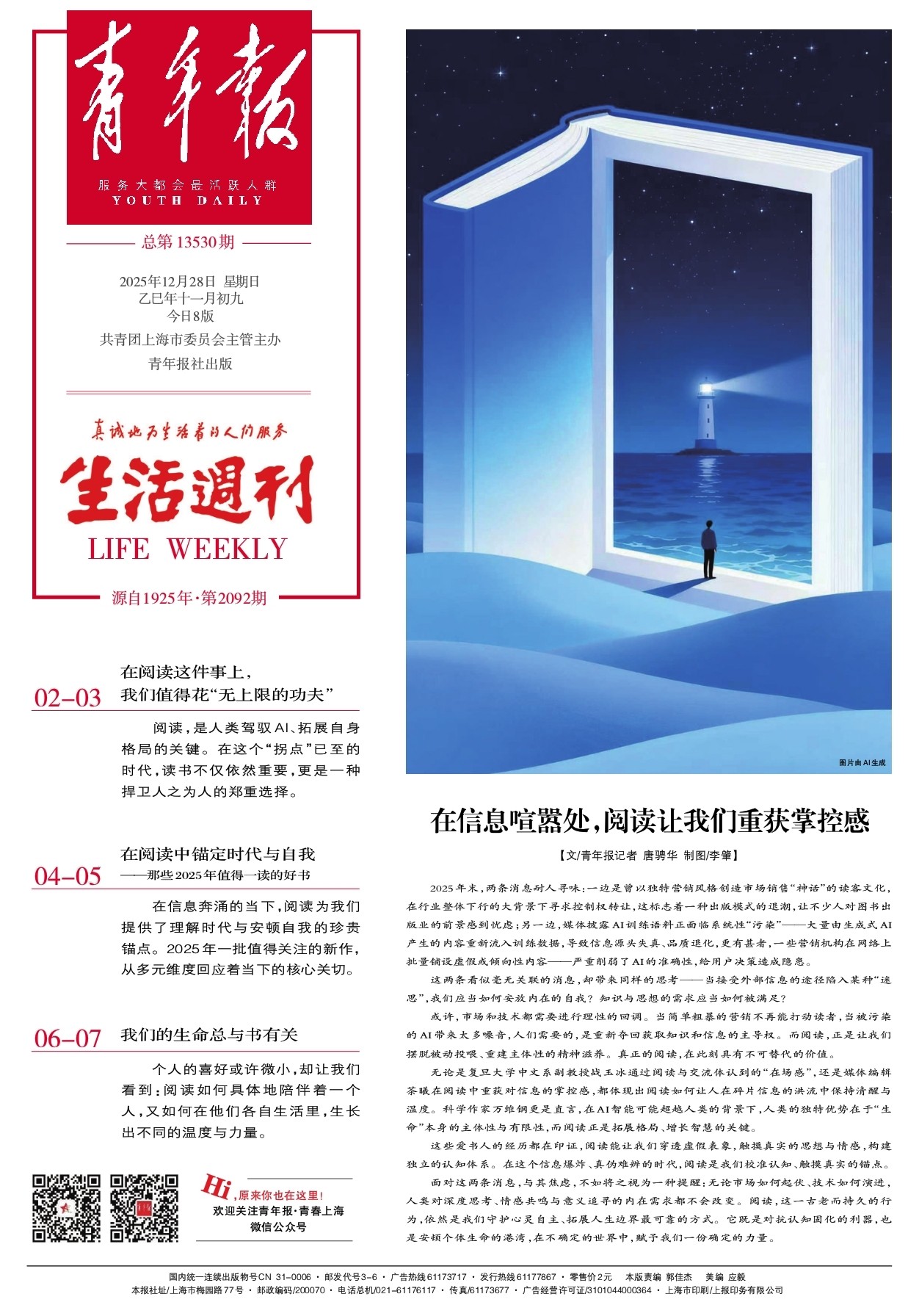 - 2025年12月28日 星期日 乙巳年十一月初九 今日8版 共青团上海市委员会主管主办 青年报社出版 总第13530期 源自1925年·第2092期