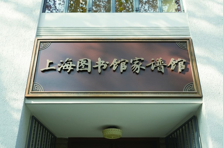 上海图书馆家谱馆位于长乐路富民路口。此处曾是建于1941年的合众图书馆。全新开放的上海图书馆家谱馆在一楼设立展厅,首展以“众擎易举——合众图书馆的前世今生”纪念“合众”先贤,通过珍贵善本、实物及情景还原,让读者重新感知、触摸“合众”精神。
