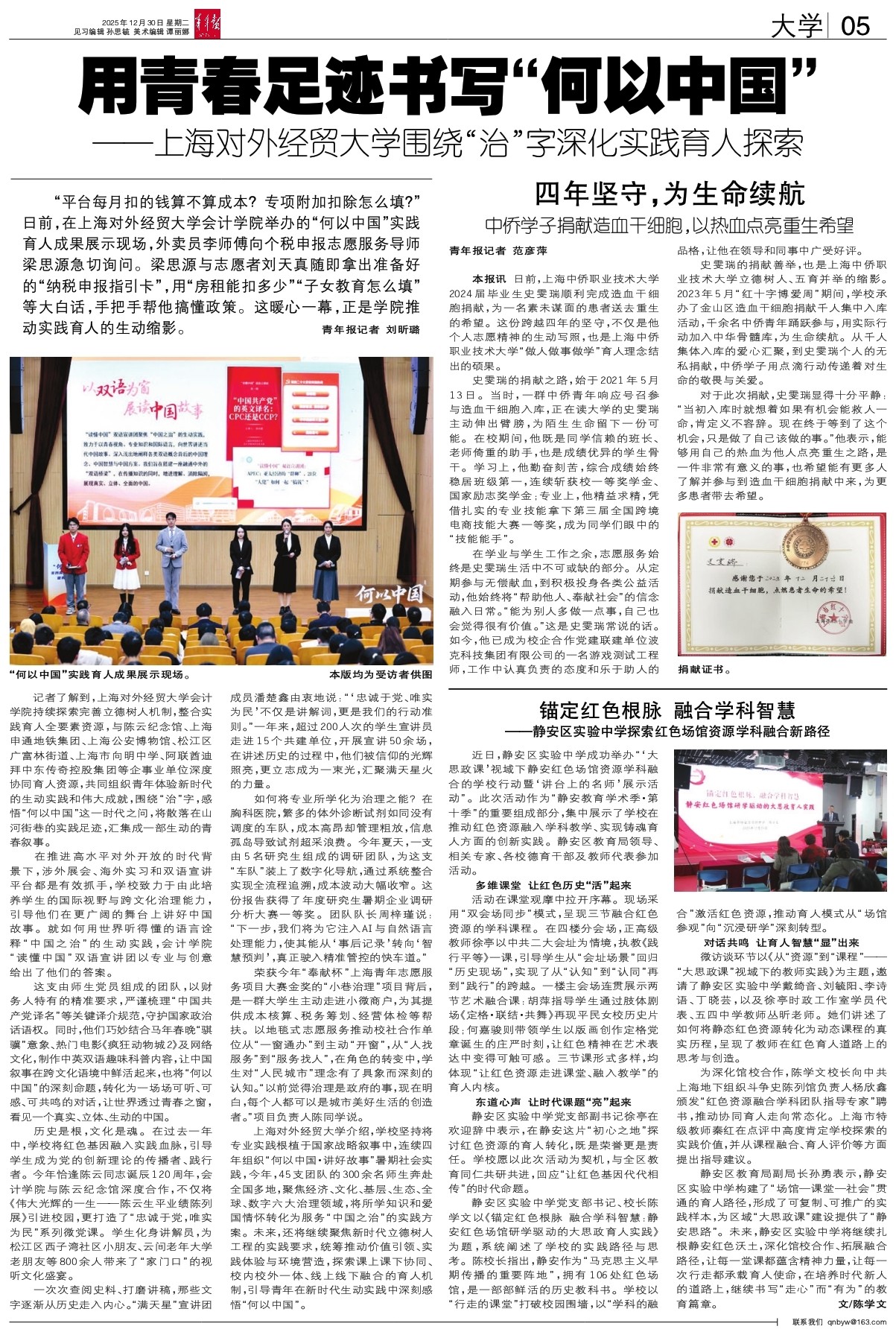 记者了解到,上海对外经贸大学会计学院持续探索完善立德树人机制,整合实践育人全要素资源,与陈云纪念馆、上海申通地铁集团、上海公安博物馆、松江区广富林街道、上海市向明中学、阿联酋迪拜中东传奇控股集团等企事业单位深度协同育人资源,共同组织青年体验新时代的生动实践和伟大成就,围绕“治”字,感悟“何以中国”这一时代之问,将散落在山河街巷的实践足迹,汇集成一部生动的青春叙事。