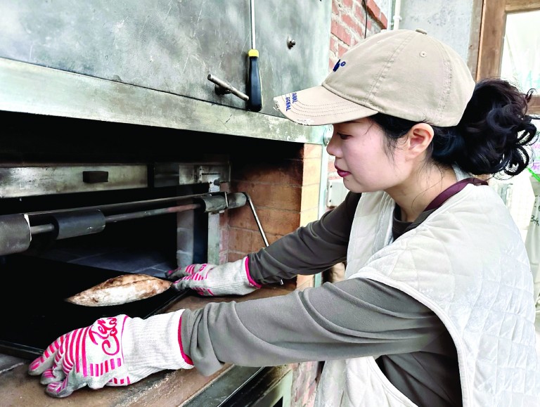 记者第一次遇见王婷婷,是在今年5月的“青春经济新城GO,嘉速奔跑远香行”主题团日活动上。这个土生土长的嘉定女生在当天的青春集市里小试牛刀,带来了几款自己做的欧包给大家品尝,热烈的反响给了她更加坚定的创业信心。当时,她正准备在马门村建造一座柴火窑,与现在市面上常用的电烤箱相比,它的温度可高达400~500℃。高温可以让面包的外皮迅速起壳,锁住内部水分,外脆内软、麦香浓郁。