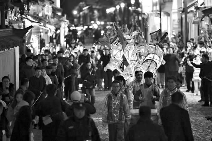 八百年州桥,作为贯穿古今的文化地标,承载着嘉定的历史记忆与烟火印记。昨晚,伴随着法华塔的璀璨灯光与鱼灯长龙的蜿蜒游走,本届“祈到州桥 ・ 福气加‘马’”青蓝季系列活动在州桥老街正式拉开帷幕。鱼灯巡游现场,一条条彩绘鱼灯长龙在队员们的默契配合下,缓缓游动,穿街过巷,蜿蜒三桥,将烟火气十足的州桥老街照亮。彩绘鱼灯时而鲤鱼摆尾,时而欢快嬉戏,在老街的弹硌路上“游动”。这场传统与现代交织的文化盛宴,为市民游客送上了满满的诚意与祝福。