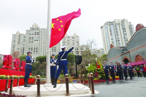 上午8点30分,中共一大纪念馆举行神圣庄严的升旗仪式。“一大广场国旗护卫队”步伐铿锵有力,走过中共一大会址,走过中共一大纪念馆新馆,来到太平湖畔。五星红旗愈发鲜红,新年首批观众驻足凝望五星红旗的冉冉升起。