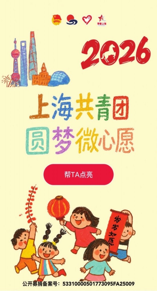 2026年上海共青团圆梦“微心愿”活动如约上线,“冬日暖阳,微行大爱”行动将在这个冬天再度传递这座城市的温暖力量。