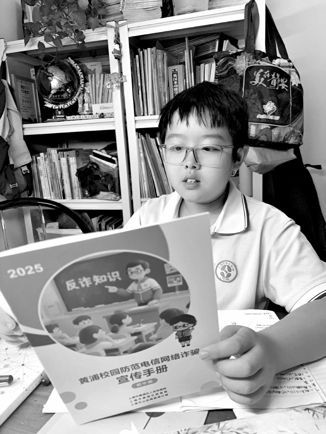 本报讯“冒充老师骗学费、游戏虚假交易骗钱、假装客服退款……原来骗子有这么多花样!”这个学期,上海市第十中学校园里持续兴起了“刷手册”热——《黄浦校园防范电信网络诈骗宣传手册》(以下简称《手册》)成为同学们课间交流的热点读物。仔细学习《手册》后,六(1)班邓绪杰同学被各种诈骗手段“吓了一跳”。如今,他脑中已经有了一根防骗的弦,不时还向别人传授经验:“千万不能贪小便宜,不点陌生链接,验证码谁要都不给,遇到可疑电话要立刻告诉家长和老师。”