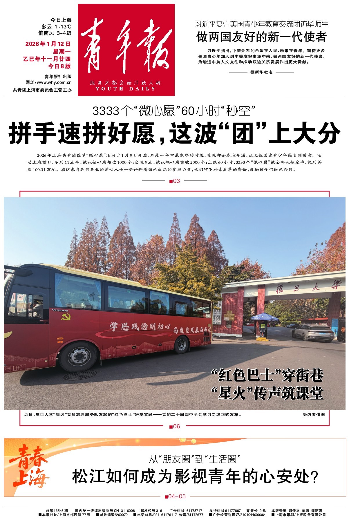 2026年上海共青团圆梦“微心愿”活动于三九天(1月9日)开启,本是一年中最寒冷的时段,暖流却如春潮奔涌,让无数困境青少年的“春天”提前降临。活动上线首日,不到11点半,被认领心愿超过1000个;当晚9点,被认领心愿突破2000个;上线60小时,3333个“微心愿”全部认领完毕,收到善款100.31万元。