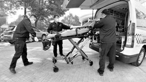 汤新告诉记者,出车范围内有很多老式小区,车行通道比较狭窄,有些楼道里还经常堆放着杂物。遇到住在五六楼的病人,光是扛着设备爬到楼上就已经满头大汗,更别说负重的同时还要兼顾患者的体重。“还有一点,因为我们抬的是病人,必须要确保病人的安全,所以要特别小心。”此外,考虑到眼下天气过于寒冷,不能让原本患病的病人再受凉,他们必须跑得更快一点,尽量缩短转运时间。
