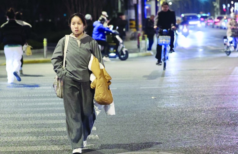 昨天傍晚体感适宜,街头路人脱下了外套。青年报记者 吴恺 摄