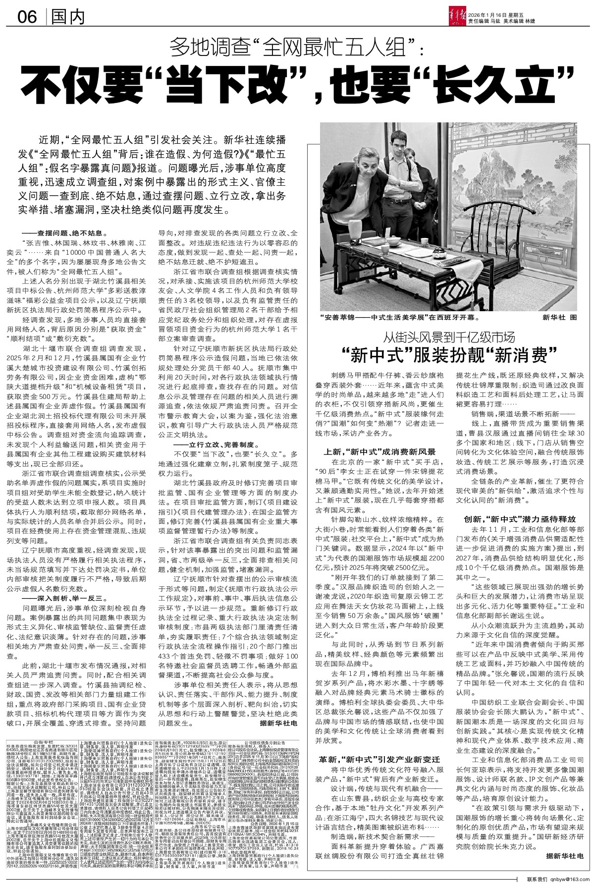 - 不仅要“当下改”,也要“长久立” 近期,“全网最忙五人组”引发社会关注。新华社连续播发《“全网最忙五人组”背后:谁在造假、为何造假?》《“最忙五人组”:假名字暴露真问题》报道。问题曝光后,涉事单位高度重视,迅速成立调查组,对