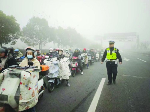 同时,因多条轮渡线路停航,虹口、宝山、浦东等区交警分别在大连路隧道、长江路隧道等过江桥隧采取警车带道方式护送非机动车过江。