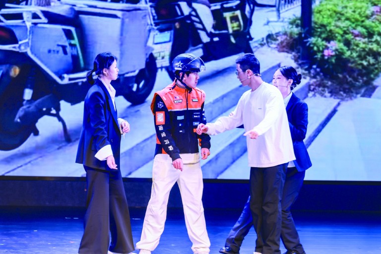 在苏州河贯通工程的情景剧中,青年还原了中远两湾城1690米步道打通前支持率不足10%的困境,演绎了基层工作者挨家挨户敲门走访、召开“楼事楼议”收集民意、将设计方案从第1版迭代至第11版的全过程,再现基层民主协商的真实场景,生动表现出人民城市理念如何在普陀落地生根、转化为具体行动;真如副中心板块,青年演绎了红旗村改造、商业综合体停车治理、数字广告产业发展等治理与产业案例,展现了城市数字化治理中“一网统管”“苏河议事厅”“楼宇党建”等机制在实际运行中不断发挥效能;桃浦智创城的故事则以一对青年人才实地探访的视角展开,演绎了老工业区向绿色科技新城转型的发展历程,呈现了“生产、生活、生态”深度融合的空间形态,诠释新质生产力培育与人才友好型城区建设协同推进的阶段性成果。