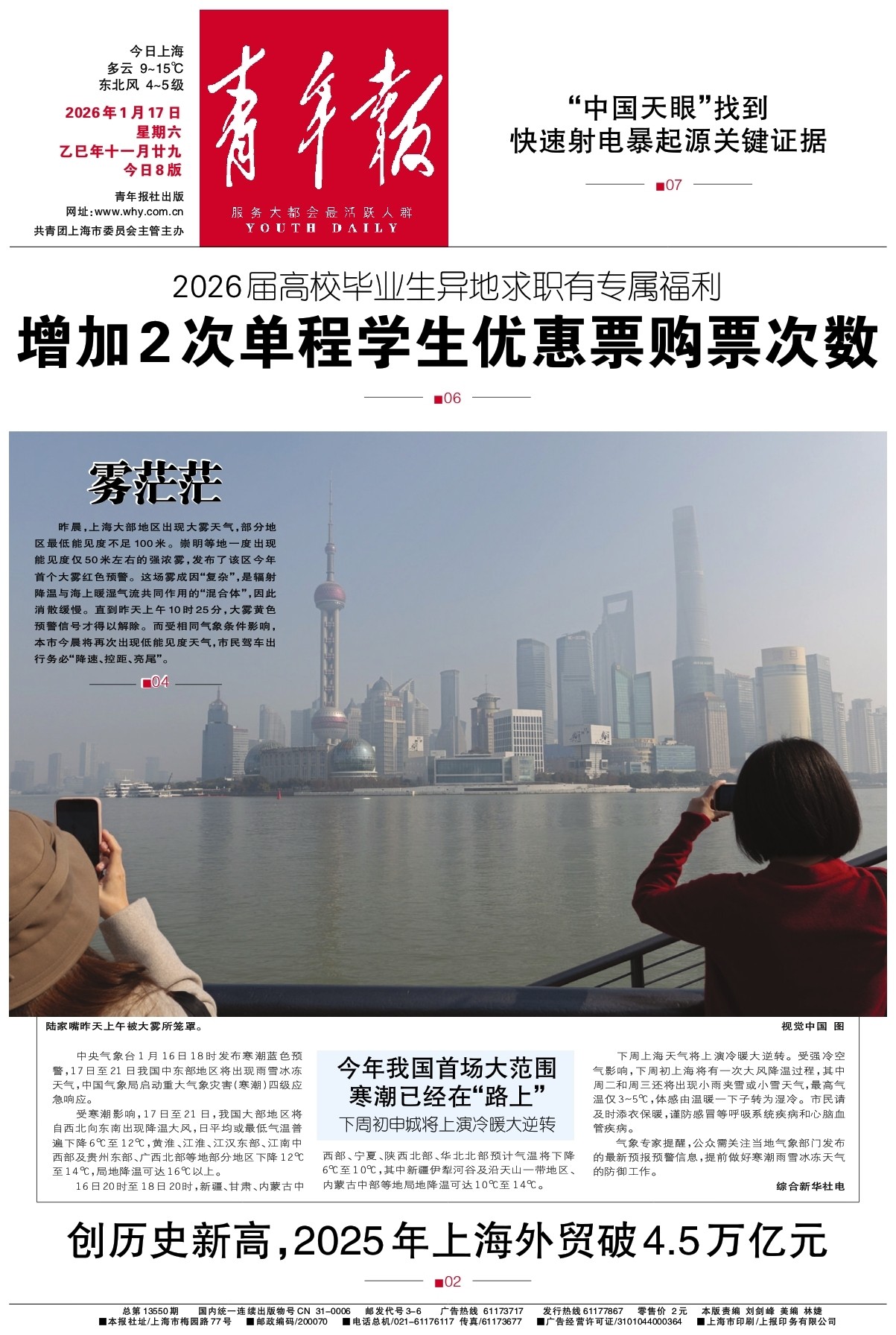 - 2026年1月17日 星期六 乙巳年十一月廿九 今日8版 青年报社出版 网址:www.why.com.cn 共青团上海市委员会主管主办