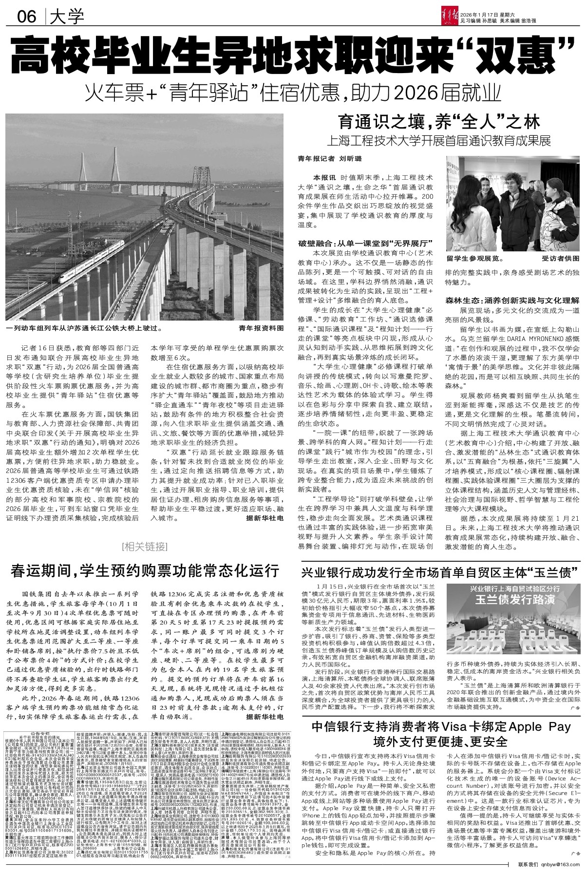 - 高校毕业生异地求职迎来“双惠” 记者16日获悉,教育部等四部门近日发布通知联合开展高校毕业生异地求职“双惠”行动,为2026届全国普通高等学校(含研究生培养单位)毕业生提供阶段性火车票购票优惠服务,并为高校毕业生提供“青年