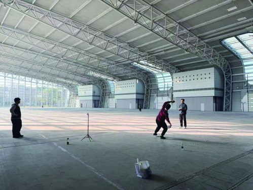 第一次的挑战,定在了2025年暑假,刘力文高考结束后。地点是宁波的云甬篮球公园。“我们一早就去了,当时球馆内的湿度为50%左右,飞行条件不是太好。”刘力文说,“我多次投出80米左右的距离,但是在最后的滑翔阶段,纸飞机受到气流影响后转向了,成绩无效。直到快中午的时候,纸飞机终于稳稳地落在了84.097米,却依然被‘马赫五标枪’压过一头。”