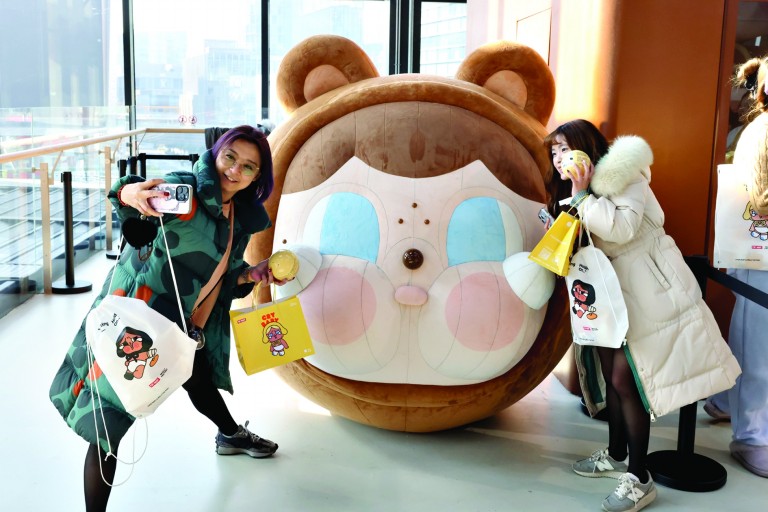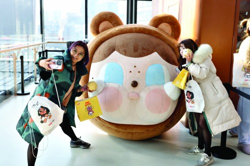 “Crybaby一直陪伴我们,感觉在这个空间里,我拥抱了自己完整的情绪。”来自中国台湾的翁子晴和女儿是人群中极易辨认的“铁粉”,身穿联名T恤,背包挂满Crybaby挂件。为了这场特展,她们专程飞来上海。在她看来,相比于常规快闪店,“这种全球仅此一份的情绪体验,必须亲临现场才能感受到”。
