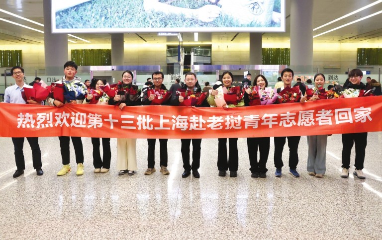 1月23日晚,第十三批中国(上海)青年志愿者赴老挝服务队凯旋。面对接机的亲属和同事,11名青年志愿者顾不上旅途疲惫,迫不及待地分享起在老挝的所见所闻。而在登机前,他们仍沉浸在难舍的情绪中。在相聚别离的“小我”体验中,这群青年也将半载青春融入中老友谊长青的“大我”中。自2025年7月22日服务老挝万象以来,队员们在当地开展语言教学、平面设计、针灸、作物种植、农业经济等各项志愿服务工作,累计服务逾7000小时,用专业与热忱在异国他乡书写了青春担当。青年报记者 丁文佳