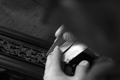蒋中庆,上海市漆器制作技艺(揩漆)代表性传承人,与生漆打交道四十年。1986年,蒋中庆以学徒身份,开始学习揩漆技艺。彼时上海是全国红木家具生产和出口重镇,蒋中庆所在的上海艺术品雕刻四厂更是华东地区唯一一家专做红木家具的厂家。他跟着老法师,从木工、雕刻到漆工,很快就掌握了全套技艺。20世纪90年代雕刻厂改制,匠人纷纷离去。蒋中庆选择坚守在这个行业,创立了“海上蒋家”。
