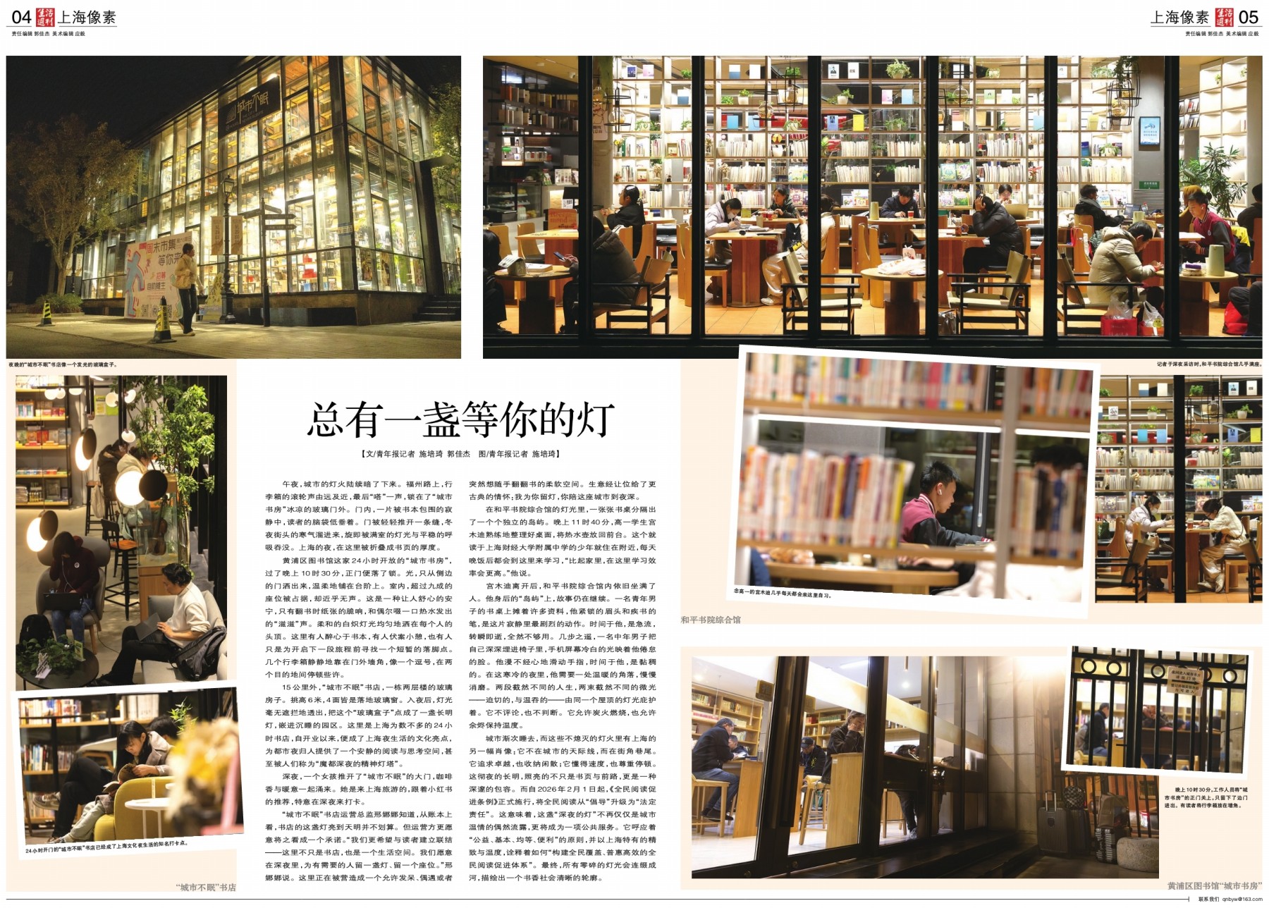 【文/青年报记者 施培琦 郭佳杰 图/青年报记者 施培琦】 午夜,城市的灯火陆续暗了下来。福州路上,行李箱的滚轮声由远及近,最后“嗒”一声,锁在了“城市书房”冰凉的玻璃门外。门内