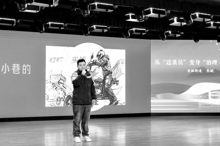 与陈锐洢一样,叮咚买菜的配送组长朱斌的宣讲也非常接地气。“手机里一声‘叮咚’,我知道,订单来了。在别人眼里,我们送的是青菜萝卜、鸡鸭鱼肉,但在我看来,这声‘叮咚’,就是我和千家万户之间的‘接头暗号’。”