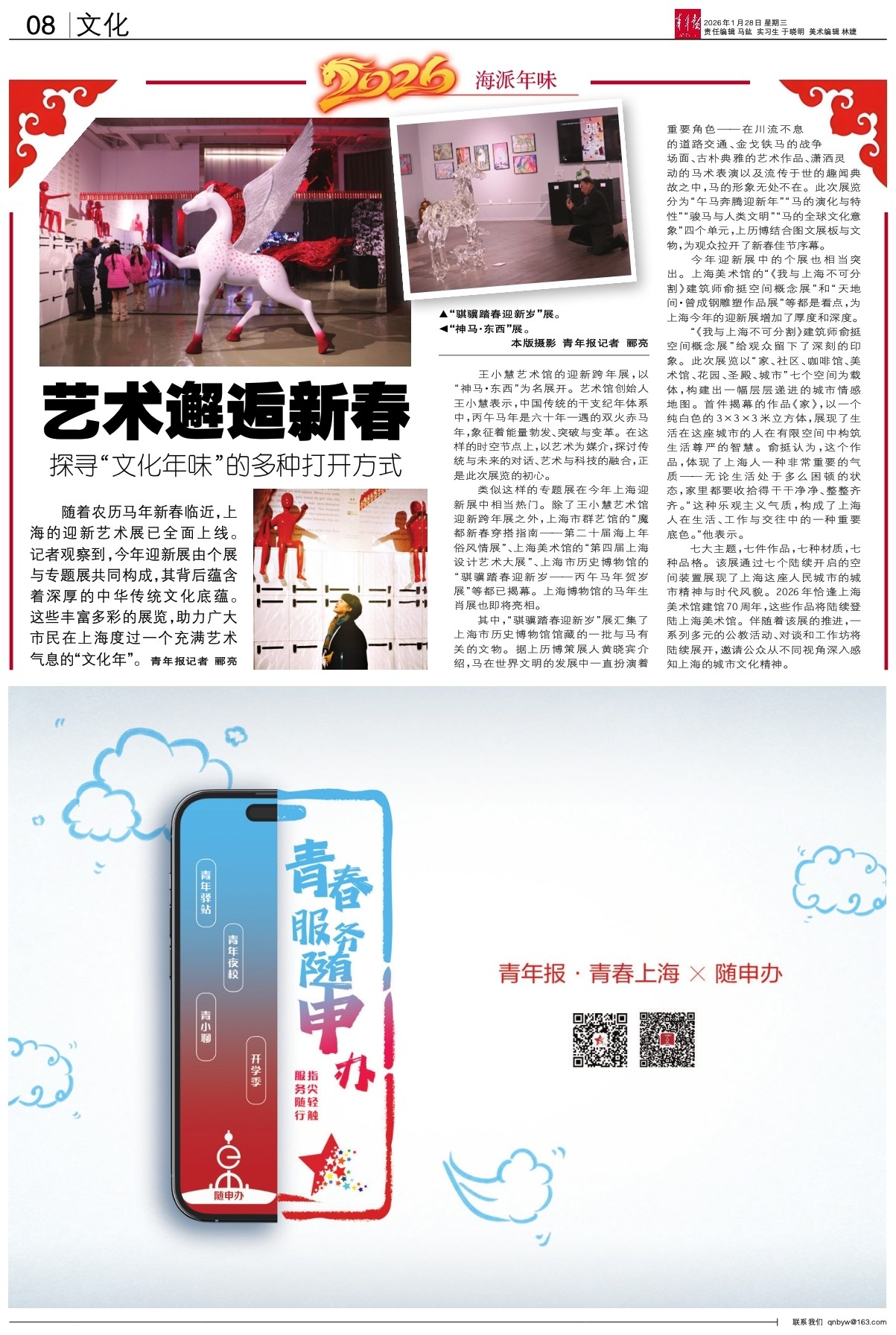 随着农历马年新春临近,上海的迎新艺术展已全面上线。记者观察到,今年迎新展由个展与专题展共同构成,其背后蕴含着深厚的中华传统文化底蕴。这些丰富多彩的展览,助力广大市民在上海度过一个充满艺术气息
