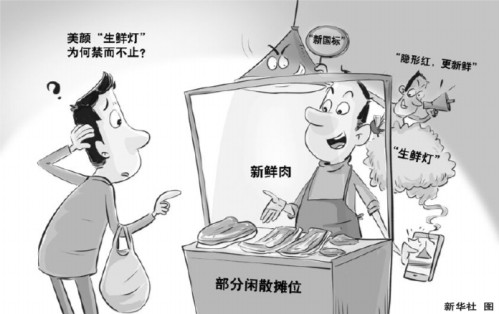 目前,一些地方大型商超和农贸市场的管理方总结出一套推动禁用“生鲜灯”的实践做法。