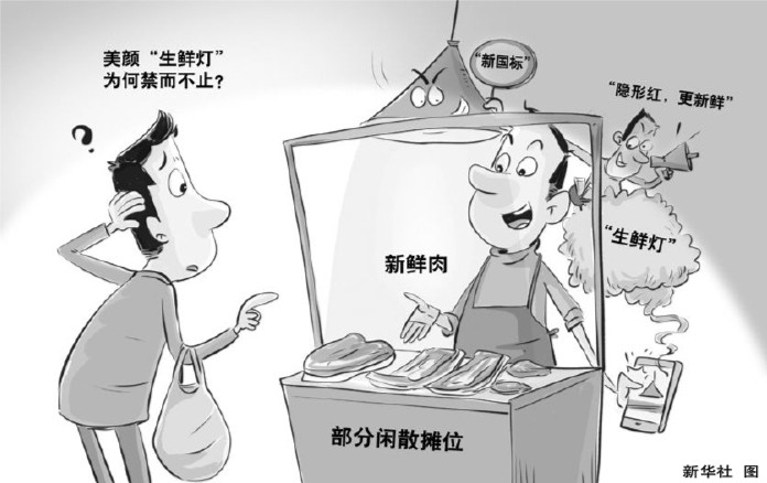 如今,新规施行逾两年,记者走访调查发现,在一些地方部分农贸市场和非固定摊位,“生鲜灯”仍有使用。