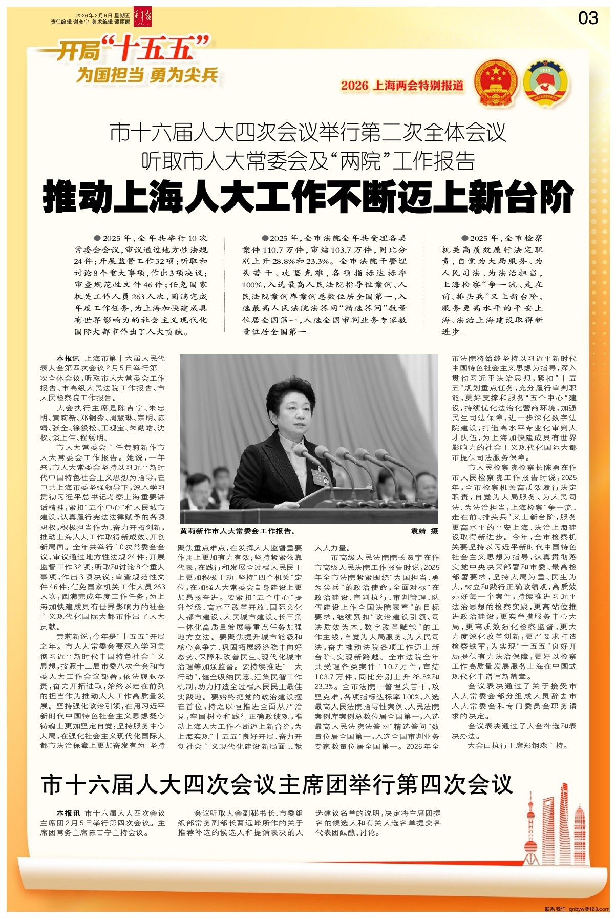 - 推动上海人大工作不断迈上新台阶 ●2025年,全年共举行10次常委会会议,审议通过地方性法规24件;开展监督工作32项;听取和讨论8个重大事项,作出3项决议;审查规范性文件46件;任免国家机关工作人员263人次,圆满完成年