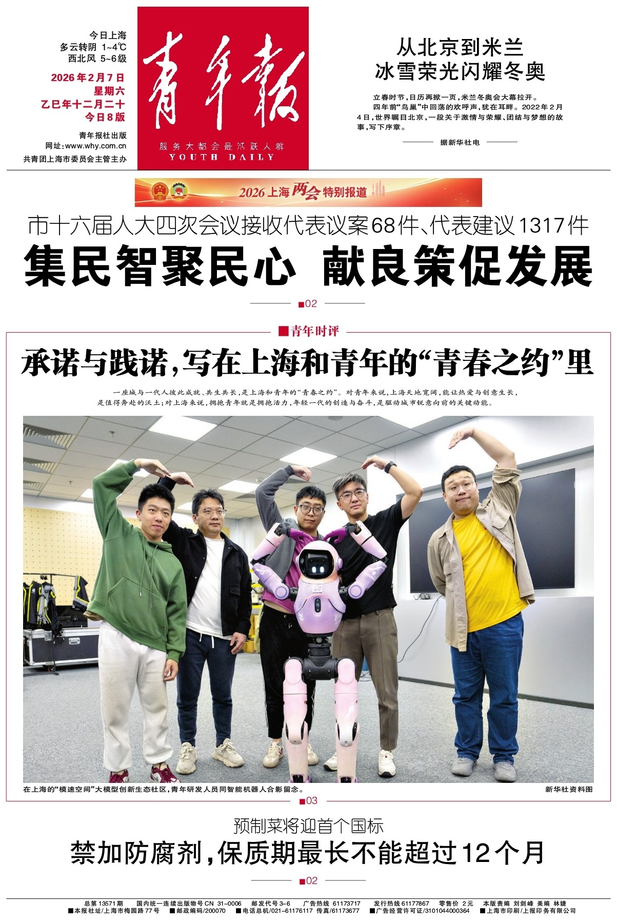 - 2026年2月7日 星期六 乙巳年十二月二十 今日8版 青年报社出版 网址:www.why.com.cn 共青团上海市委员会主管主办