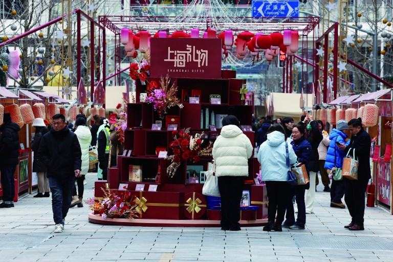 2月7日,在浦东新区前滩公园巷钱家滩路限时步行街,“上海礼物”马年新春市集正式开市。