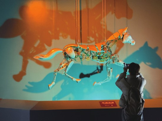 从汗血宝马,到夏尔马,到唯一野马普氏野马,再到8匹昂首奔跑的蒙古马,十几匹栩栩如生的标本马与充满现代感的机械马一起亮相上海科技馆此次“奇骥奔腾——马年科技文化特展”。