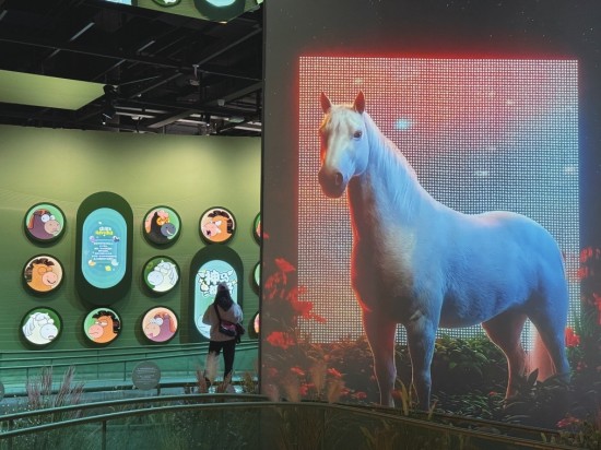康熙皇帝御用的櫜鞬,乾隆帝拉过的弓,都能在这次特展中看到。其中,汉代陶彩绘马头、唐代三彩马、三彩胡人骑马狩猎俑、铜“圣旨”合符、银虎钮“镶黄旗护军统领印”等珍贵文物以及《乾隆帝盔甲乘马图》《郎世宁万吉骦轴》等数字展品纷纷亮相,结合数字演绎,生动展现马在历史中的多元意义。此外,展览还融入裸眼3D、AI等科技手段,设置了多个沉浸式互动展项,让观众在可看、可感、可玩中深入理解马的文化与科学内涵。“珍贵文物的展陈,可以更多地让人了解到马背后的历史与故事。”倪闽景介绍说。