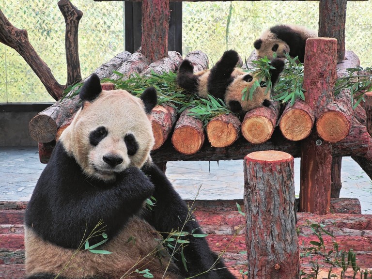 记者了解到,面对“芊金”同时哺育双崽可能带来的风险,保育团队果断采用“母带幼为主、人工辅助为辅”模式,24小时轮班监测、营养强化配方奶补充等措施,确保“芊金”与幼崽健康。现经过170余天的精心呵护,“芊然”和“芊逸”均由“芊金”妈妈哺育。保育员表示,将继续加强大熊猫的保护与研究工作,同时邀请广大公众一起关注、共同见证大熊猫这一珍稀物种在园区的茁壮成长。