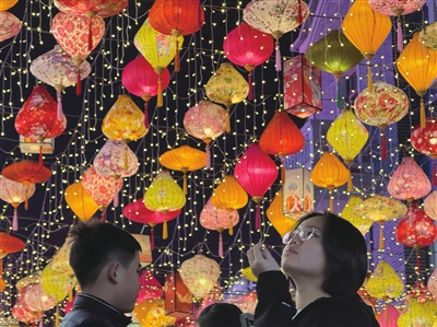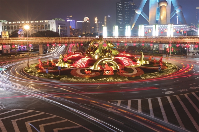 在陆家嘴,一组组马年主题雕塑与灯笼、绿植交相辉映,在现代天际线下跃动着喜庆的节日符号。移步莘庄,延续九载的光影盛宴如约而至。TODTOWN Mall天荟广场11米高的“醒狮夺魁”主灯气势夺目,仲盛世界商城北广场沿线锦鲤、萌马与财神灯组串联起“马上好运”“马上发财”的美好寓意,“马啸长空”灯组更以腾跃之姿成为夜色中的焦点。在张园,“福禄寿禧财”五福光影随昼夜流转的吉祥意趣,徐悲鸿笔下的骏马在《一马当先》光影秀中穿越多重奇幻时空。