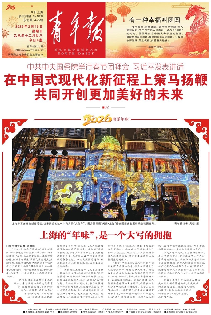 - 2026年2月15日 星期日 乙巳年十二月廿八 今日4版 青年报社出版 网址:www.why.com.cn 共青团上海市委员会主管主办