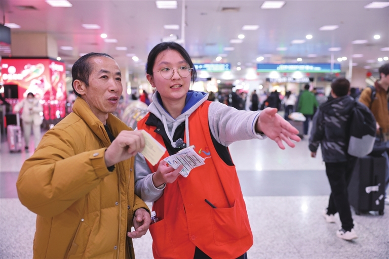 面对如此巨大的返程客流,如何保障旅客顺利回家?地铁虹桥火车站站内,一群青年志愿者正用行动给出答案。青年报记者 郭颖