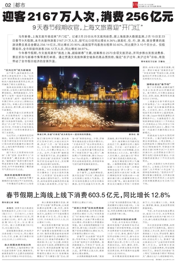 春节假期上海线上线下消费603.5亿元,同比增长12.8%
